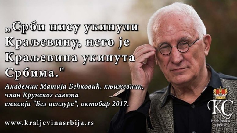 ЦИТАТИ О МОНАРХИЈИ – Матија Бећковић Posted By: Maja Kovacevic 1. новембар 2017. Aкадемик Матија Бећковић, књижевник, члан Крунског савета, емисија „Без цензуре“, октобар 2017. године
