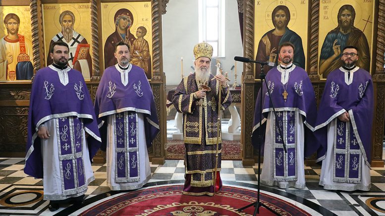 Његова Светост Патријарх српски служио је 3. априла 2019. године Литургију пређеосвећених дарова у храму Светог Василија Острошког на Бањици.