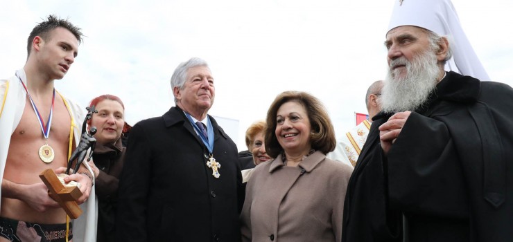 Њихова Краљевска Височанства Престолонаследник Александар и Принцеза Катарина заједно са г-ђом Бети Румелиотис, сестром Принцезе Катарине, присуствовали су на Богојављење традиционалном пливању за Часни крст на Дунавском кеју у Земуну.
