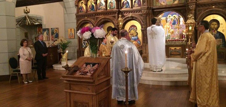 Њихова Краљевска Височанства Престолонаследник Александар и Принцеза Катарина у друштву њене унуке Аманде и њеног вереника Натанијела и сестре г-ђе Бети Румелиотис присуствовали су јутрос Литургији у Цркви Светог Саве у Кембриџу (Бостон, Масачусетс), а потом и добротворном банкету на ком су прикупљана средства за обнову Цркве Светог Саве у Њујорку која је пре месец дана страдала у пожару.