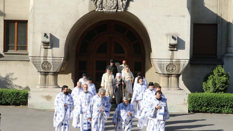 Саслуживали су старешина манастира Ново Хопово архимандрит Павле, архимандрит Серафим из манастира Сукова, главни секретар Светог Архијерејског Синода протојереј-ставрофор др Саво Јовић,  ректор Богословије Светог Саве протојереј-ставрофор др Драган Протић, директор Патријаршијске управне канцеларије протојереј-ставрофор Стојадин Павловић, архијерејски намесник београдски протојереј-ставрофор проф. др Владимир Вукашиновић, старешина Саборне цркве протојереј-ставрофор Петар Лукић, старешина цркве Светог Симеона Мироточивог протојереј-ставрофор Радич Радичевић, протојереј-ставрофор Милојко Топаловић, презвитери Славиша Поповић и Игор Давидовић, протођакони Радимир Перчевић, Стеван Рапајић и Дамјан Божић, као и ипођакони Мирослав Ракоњац, Владимир Јелић, Дејан Накић и Ђорђе Мијајловић.