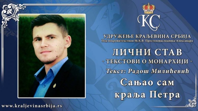 У оквиру рубрике „Лични став“ прочитајте песму господина Радоша Милићевића – „Сањао сам Краља Петра“.