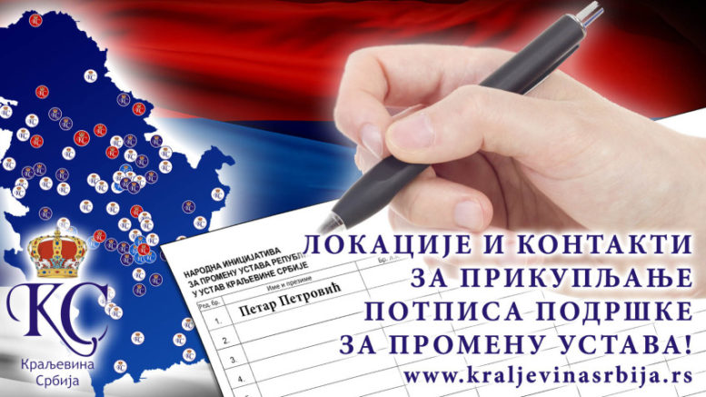 Локације и контакти за прикупљање потписа подршке народној иницијативи за промену Устава Републике Србије у Устав Краљевине Србије.