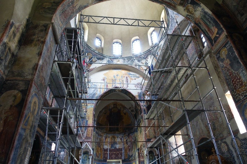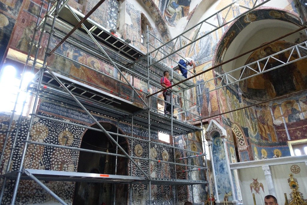 За ту прилику је ових дана монтирана импозантна скела у читавом наосу са пространом платформом која је постављена до саме куполе и обухвата све иначе неприступачне делове зидова на којима су временом оштећене фреске. Тиме је омогућен комфоран и безбедан рад стручњака конзерватора- рестауратора, али и потпуно неометана употреба простора цркве за богослужење и посете туриста .