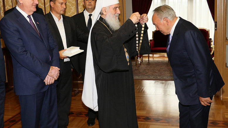 Његова Светост Патријарх српски г. Иринеј уручио је 24. августа 2016. године, у Патријаршијској резиденцији у Београду, орден Светог Саве првог степена г. Нурсултану Назарбајеву, председнику Републике Казахстана.