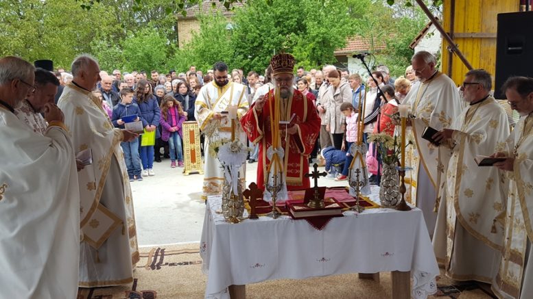 Завршене темеље будуће цркве Светог пророка Илије, пре свете архијерејске Литургије, освештао је Преосвећени Епископ сремски г. Василије, помоћник епископа Лукијана. Поред положене повеље о градњи, у темеље је уграђено камење из манастира Хиландара и Острога, са Свете Фрушке Горе, из Вагана код Шипова, као и по Божјем промислу сачувани камен који је требао бити уграђен у планирану цркву пре Другог светског рата.