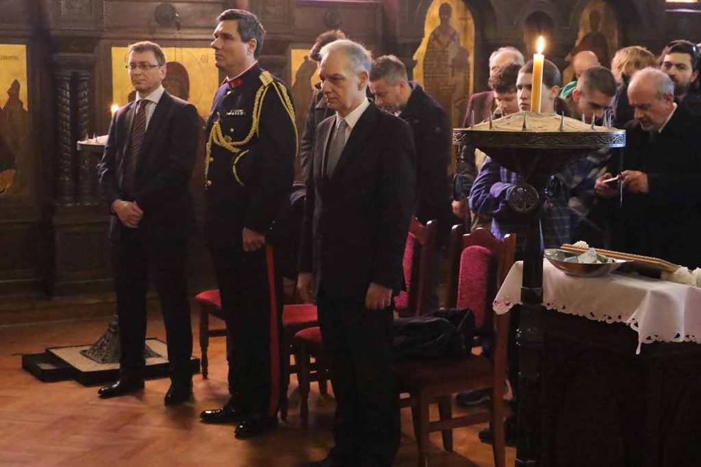По устаљеној традицији скоро педесет година благодарењу у Придворном храму у Патријаршији српској присуствују амбасадори и војни аташеи Републике Грчке и Републике Кипара са службеницима амбасада и припадницим грчке заједнице у престоном граду Београду. Богослужењу су присуствовали и чланови Удружења за неговање традиција ослободилачких ратова Србије од 1912. до 1918. године.
