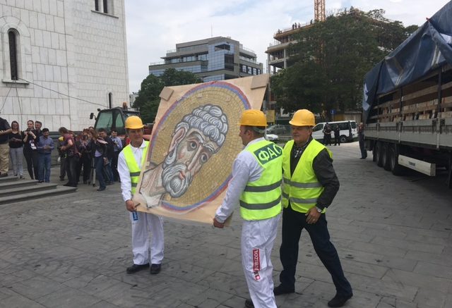 Десет тона мозаика композиције Вазнесења Христовог, упакованог у 62 палете, прошло је, после седам дана путовања и пређених више од две хиљаде километара, од московског атељеа Николаја Мухина, кроз Русију, Белорусију, Пољску, Словачку и Мађарску, до Београда и Врачарског платоа.