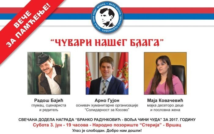 Радош Бајић, Арно Гујон и Маја Ковачевић су добитници награде „Бранко Радунковић – Воља чини чуда“ за 2017. годину