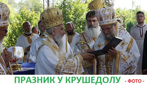 На дан Свете Мајке Ангелине, 12. августа 2016. године, у 8 часова, Његово Преосвештенство Епископ сремски г. Василије заједно са више архијереја, свештеника и ђакона, у молитвеном присуству многобројног верног народа, дочекао је пред капијом манастира Крушедол Његову Светост Патријарха српског г. Иринеја.