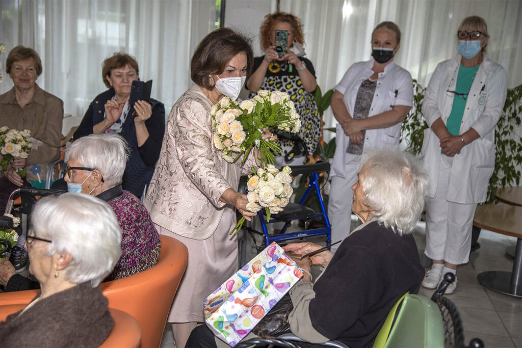 Београд, 31. мај 2022. – Њ.K.В. Принцеза Kатарина изненадила је још једном даме у дому за старе Бежанијска коса и данас им уручила букете прелепих ружа из Kраљевског врта.