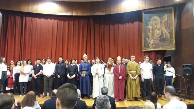 Драмски део програма су извели ученици Електро-техничке школе Земун. Њихов задатак је био да на сцени амфитеатра прикажу драму посвећену стицању аутокефалности Српске Православне Цркве и крунисању Стефана Првовенчаног. Текст драме је настао на основу Теодосијевог житија, а ученици су уз помоћ катихете и професора срспког језика, ликовне културе и историје осмислили сценографију и костиме за представу. Озбиљним приступом тексту, убедљивим тумачењем својих улога и одлично изведеним инструменталним делом, ученици су показали да су дорасли изазову који је пред њих стављен. Зато са великим поносом наводимо имена оних који су учествовали у представи: Небојша Елчић као Свети Сава, Петар Репац као Стефан Првовенчани, Вања Сентић као краљица Ана, Богдан Мирковић као цар Теодор Ласкарис, Вук Ђукић као слуга на двору цара Теодора, Никола Милосављевић као слуга Стефана Првпвенчаног, Дарко Антић као монах, музичари Филип Бркић, Филип Здравковић, Север Трифуновић и Матеја Сарић.