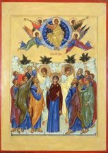 Узносећи се Својим васкрслим телом, које су људи били умртвили и у земљу зарили, Он је благосиљао рукама, које су људи били клинцiма израњавали. О, благословени Г осподе, како је превелика милост Твоја! С благословом је по ч ела историја Твога доласка у свет, с благословом се и завршила. Објављујући Твој долазак у свет архангел Гаврил је поздравио Пресвету Богоматер речима: радуј се, благодатна, благословена си ти међу женама! А сада, када се Ти поздрављаш са онима, који Те примише, Ти шириш пречисте руке Своје и обасипаш их благословом. О, најблагословенији међу људима! О, благодатни источниче благослова! Благослови и нас, као што си благословио апостоле Твоје!