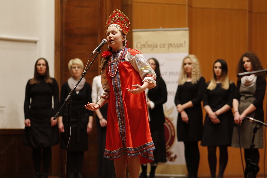 Заједно са појцима Родослова сви присутни отпевали су химну Боже правде. Архимандрит Стефан Вучковић, игуман манастира Велика Ремета благословио je Сабрање Србија се роди. Бираним речима све сабране поздравио је господин Андреја Младеновић, заменик градоначелника Београда, истакавши важност борбе за позитиван природни прираштај. Дечији певачки састав Света Србија и КУД Пива отворили су уметнички део програма. Први беседник данашњице академик Матија Бећковић у поучном обраћању прозборио је о улози гусала данас и очувању вере и традиције. Готово мисионарски, поучни говор Бећковић је као и Младеновић уз радосни усклик завршио поздравом Србија се роди! Ређали су се од публике усрдно прихваћениПевачки састав Света Србија, дете интерпретатор руских песама Ангелина Ђорић, музички уметници Драган Млађеновић и Јасна Хинић,Појачка група Родослов.