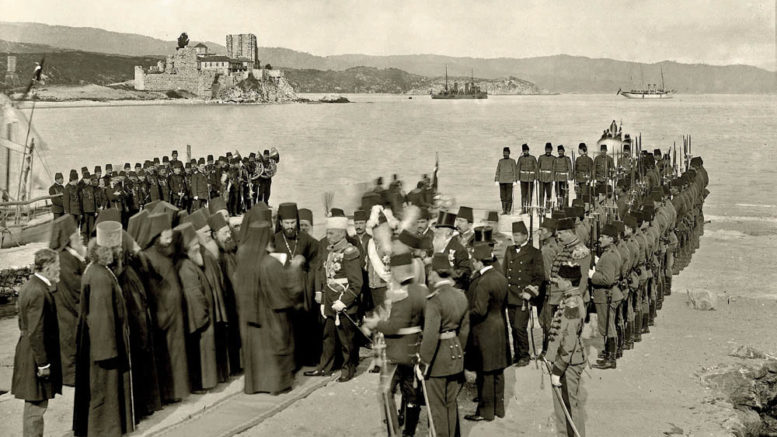 Толико ми је тешко пало унижавање српских византолога уочи светског конгреса у Београду да нисам отишао ни на изложбу врсног Музеја града (у Конаку кнегиње Љубице) о Светој Гори. А на изложби је била и ова фотографија: Дочек краља Петра Карађорђевића (тада у свести народа и света ни Први ни Ослободилац) на старом хиландарском пристаништу, Арсани, 28. марта 1910. У позадини се виде две лађе (путничка, вероватно султанова јахта „Ердогул“, стављена краљу на располагање, и ратна, једна од неколико војних бродова које је султан послао као краљеву пратњу). На фотографији се виде и председник Владе Никола Пашић и министар спољних послова Милован Миловановић који су били у краљевој пратњи како озбиљним председницима и министрима стварно српске владе и приличи. Виде се свештена лица, то су представници свих светогорских манастира. (Међу њима, ако не грешим, тадашњи проигуман Нићифор и јеромонах Панкратије, Чех, син чувеног хиландарског историчара и библиотекара Саве Хиландарца, као и тадашњи синђел Гаврило Дожић.) Иза њих се налази славолук (који се не види) на коме пише: „Обновиоца Душанових стаза, нека Свемогући увенча славом његовом“. Крочивши на мол, краљ Петар је постао Први Карађорђевић који је ступио на тло Свете Горе. Уз почасне плотуне са турских ратних бродова, што се на фотографији наравно не види. Али се види почасни строј војске. Турске. Оне исте коју ће две године касније српска војска поразити додавши свом врховном команданту, свом краљу и титулу Ослободилац.