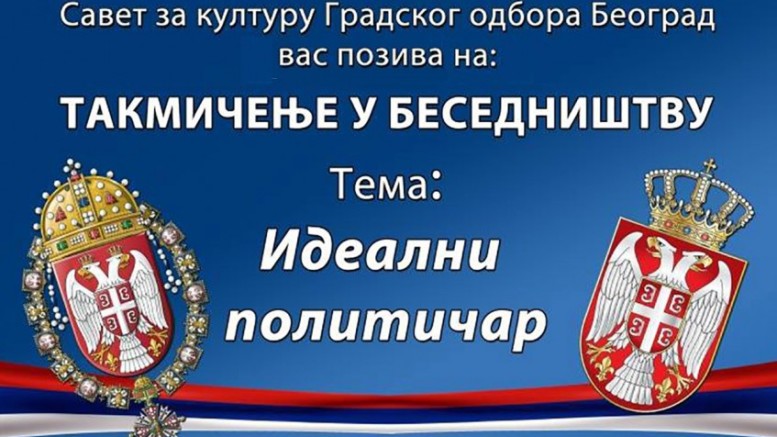 Удружење Краљевина Србија и Савет за културу Градског одбора Београд вас позивају на ТАКМИЧЕЊЕ У БЕСЕДНИШТВУ, тема: Идеални политичар