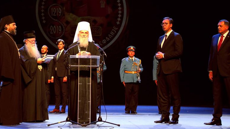 Поглавар Српске Православне Цркве патријарх Иринеј поручио је да је Српска Православна Црква дочекала да прослави велики јубилеј, осам векова њене аутокефалности, и то да Црква и држава опет представљају „две руке“, као у време Немањића. „Захвални смо Богу што смо, после много празног времена и прилика дочекали да Црква и држава представљају две руке, где Црква врши своју мисију, јеванђељску, благодатну, а држава своју дужност и мисију. То је стање које је било за време Немањића и хвала богу вратило се и у наше време“, поручио је патријарх Иринеј на завршетку свечане академије.